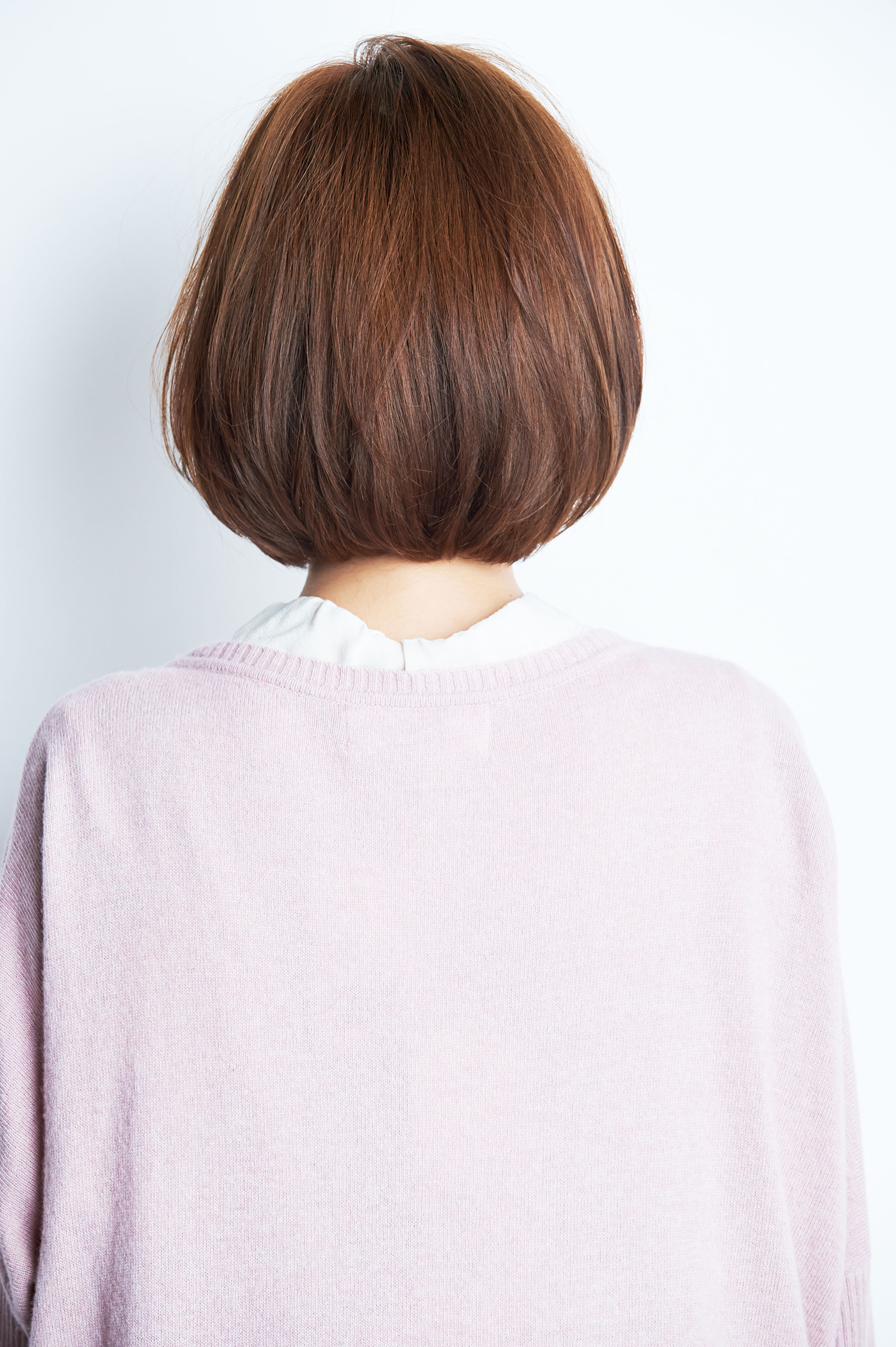 バックは首の付け根でカットし、やや前上がりのアゴライン。