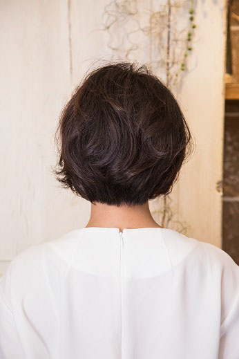 - トップにボリュームアップミストをつけて持ち上げて乾かします。毛先にハード系枠すを揉み込みカールを無造作にくずします。外ハネを意識して下から上へ反り返らすようにスプレーして完成。