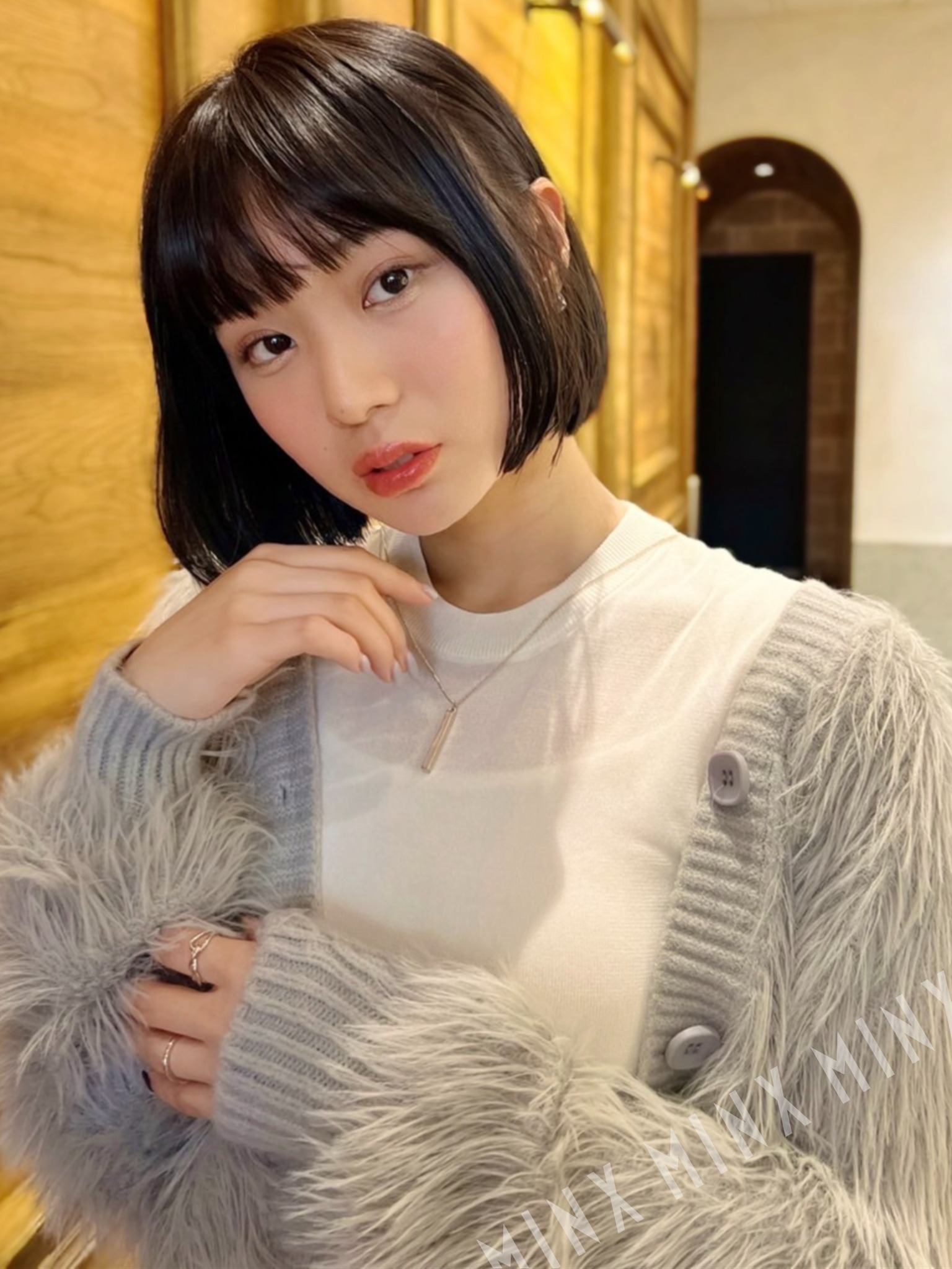 - 自然な丸さとツヤを重視した耳掛けボブ