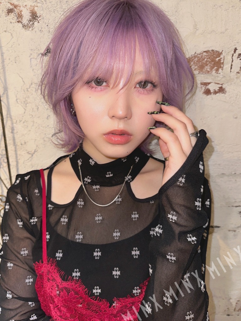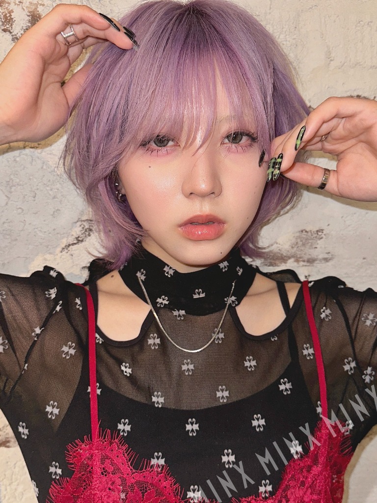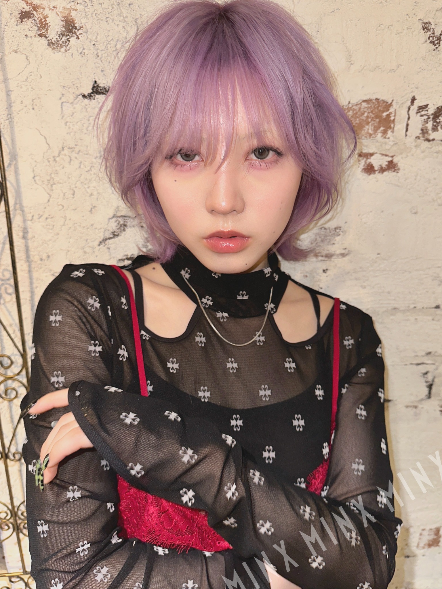 - ハイトーンのウルフレイヤーを動かし、やや立体感を作るスタイリングにしてみました。