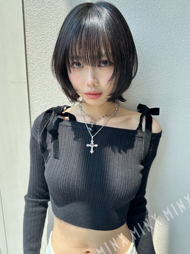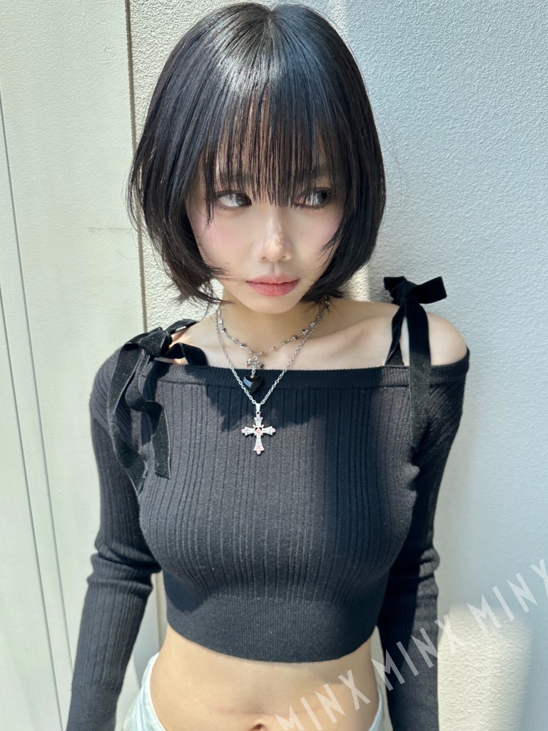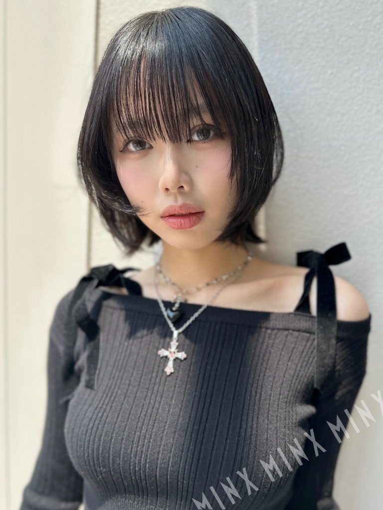 - 表面は軽く動かせるスタイル、顔周りにパラパラと落ちるレイヤーで韓国トレンド感が出るスタイルになってます