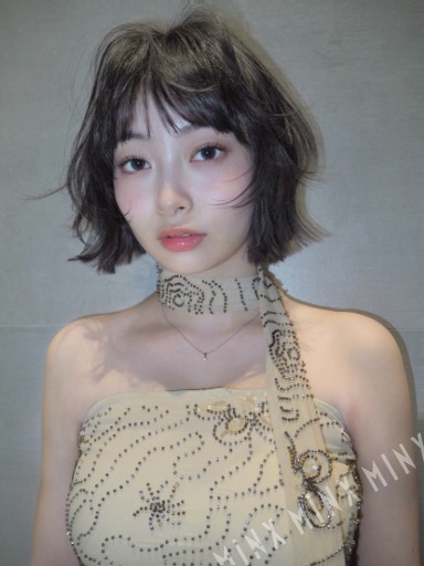 - 全体を外ハネにして、顔まわりのレイヤーを生かして巻いて動きを出しました。