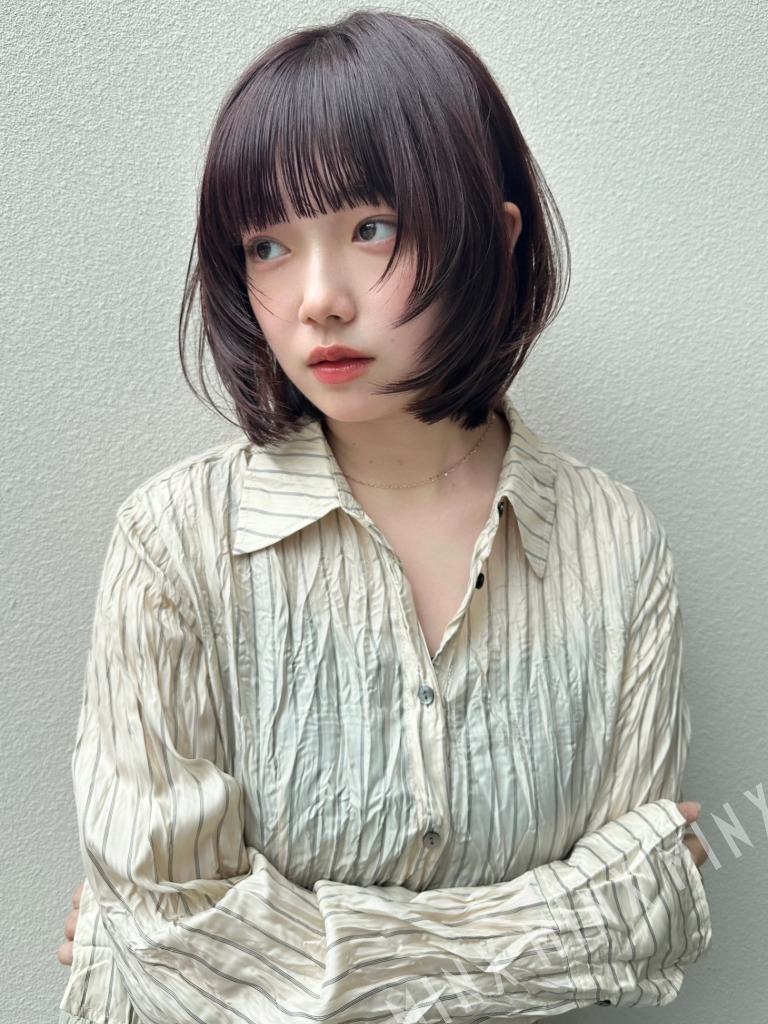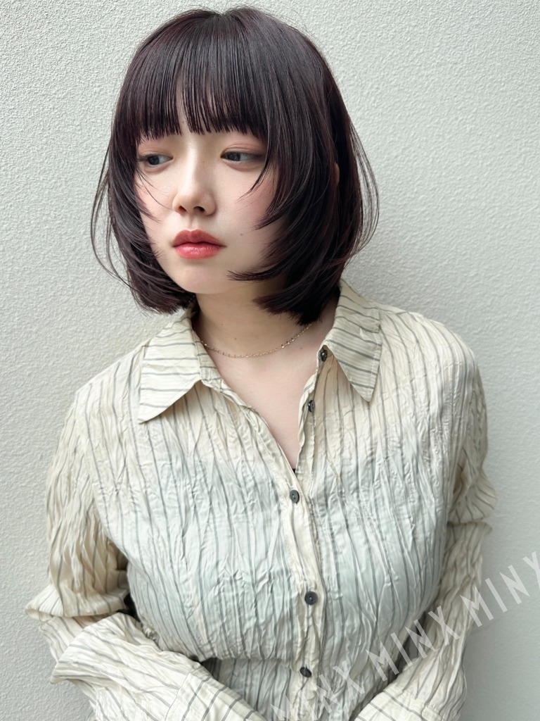 - あごラインに合わせたボブベースに、表面へ軽くレイヤーをプラス。