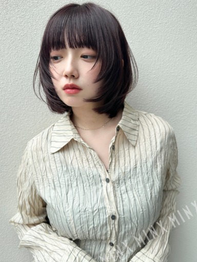 顔まわりを包み込む毛流れで小顔効果があり、丸みのあるシルエットが女性らしさを引き立てます。