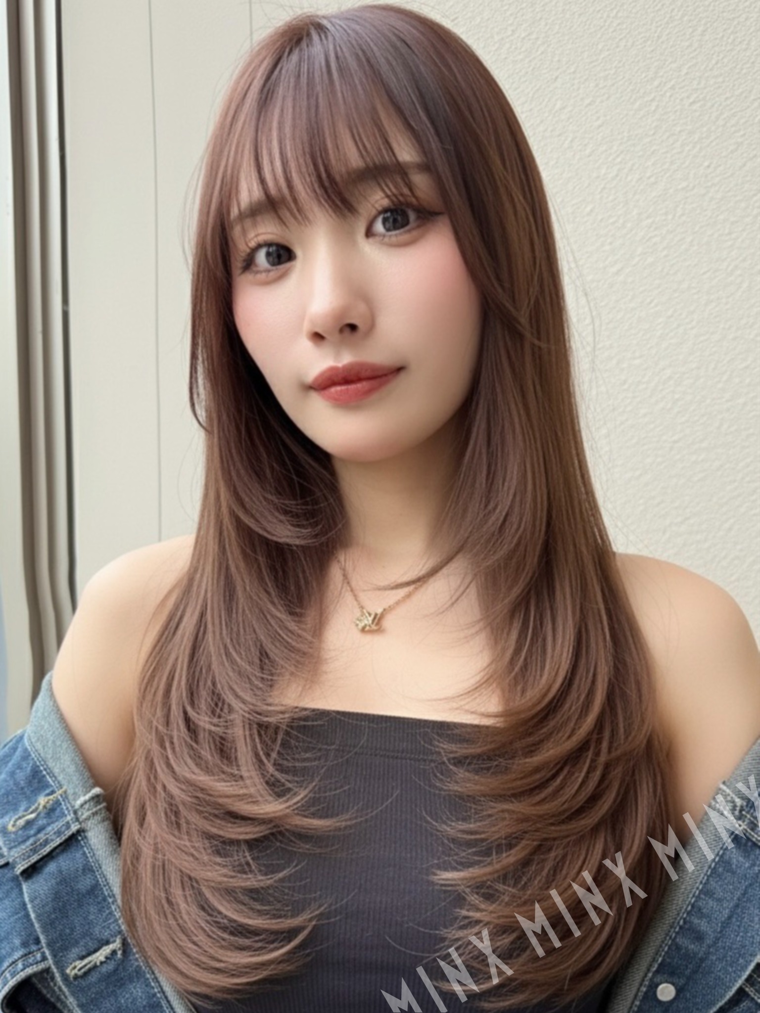 - 全体的にレイヤーが入っているスタイルで、コテでワンカールに巻くだけで可愛く決まるスタイルです。