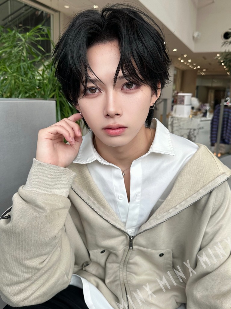 - 全体軽くリバースで毛が流れるやつにアイロンを通し、ナチュラルのワックスでスタイリングしました。