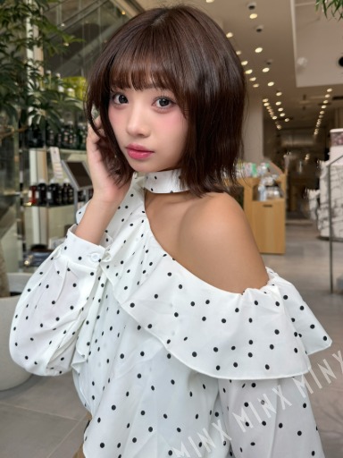 - モデルさんの雰囲気に合うように毛先を軽く内巻きにスタイリングしました。