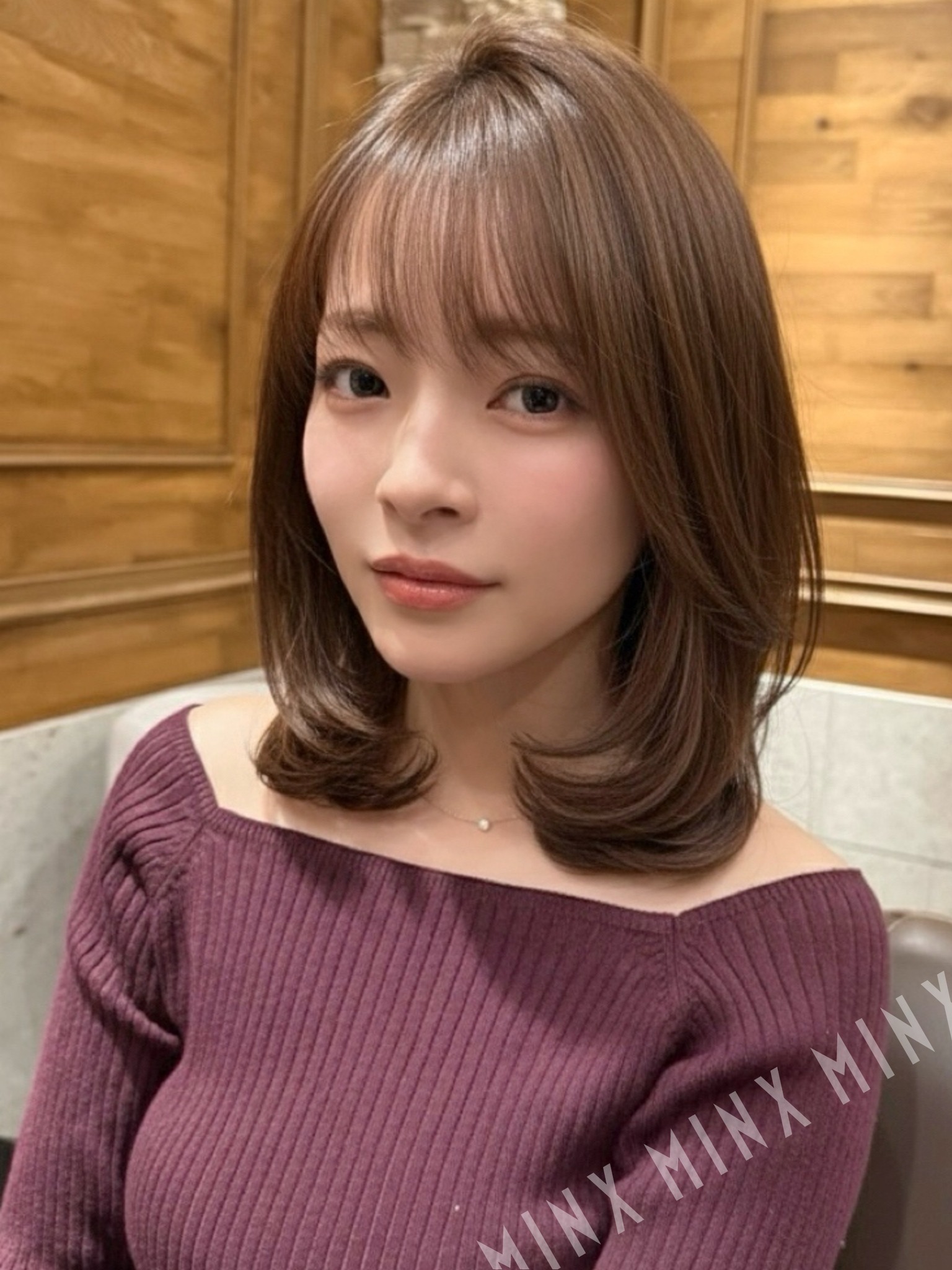 - 内巻きに32ミリのコテで軽くワンカールしたら、オイルをつけて完成です!