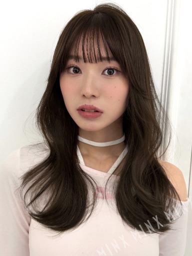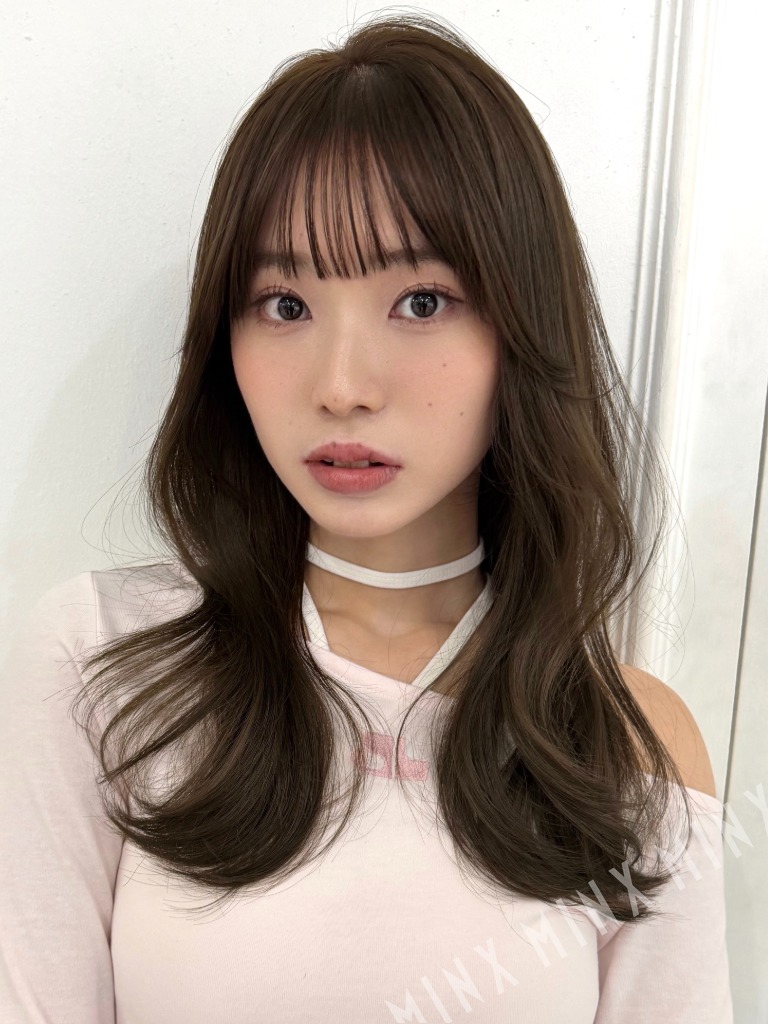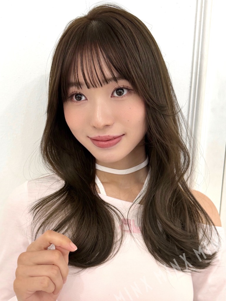 - レイヤーカット ミディアム ロング シースルーバング 韓国女優 ベージュ