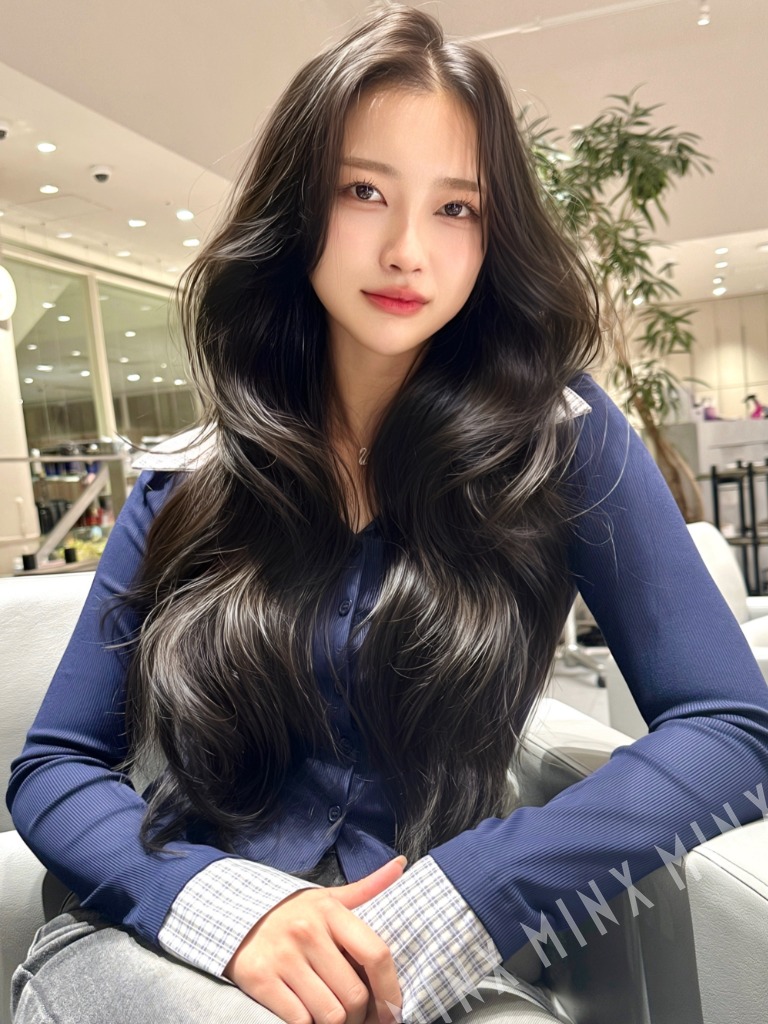 - 少し韓国感と優しい印象を与えたいため、45mmのカールアイロンで巻きました!