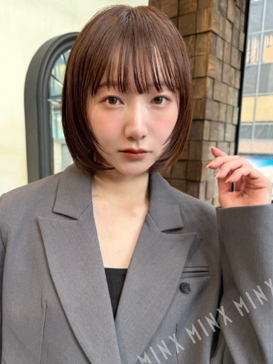 - 自然にうちに入るシンプルボブに、顔周りレイヤーを入れて今っぽいヘアスタイルに