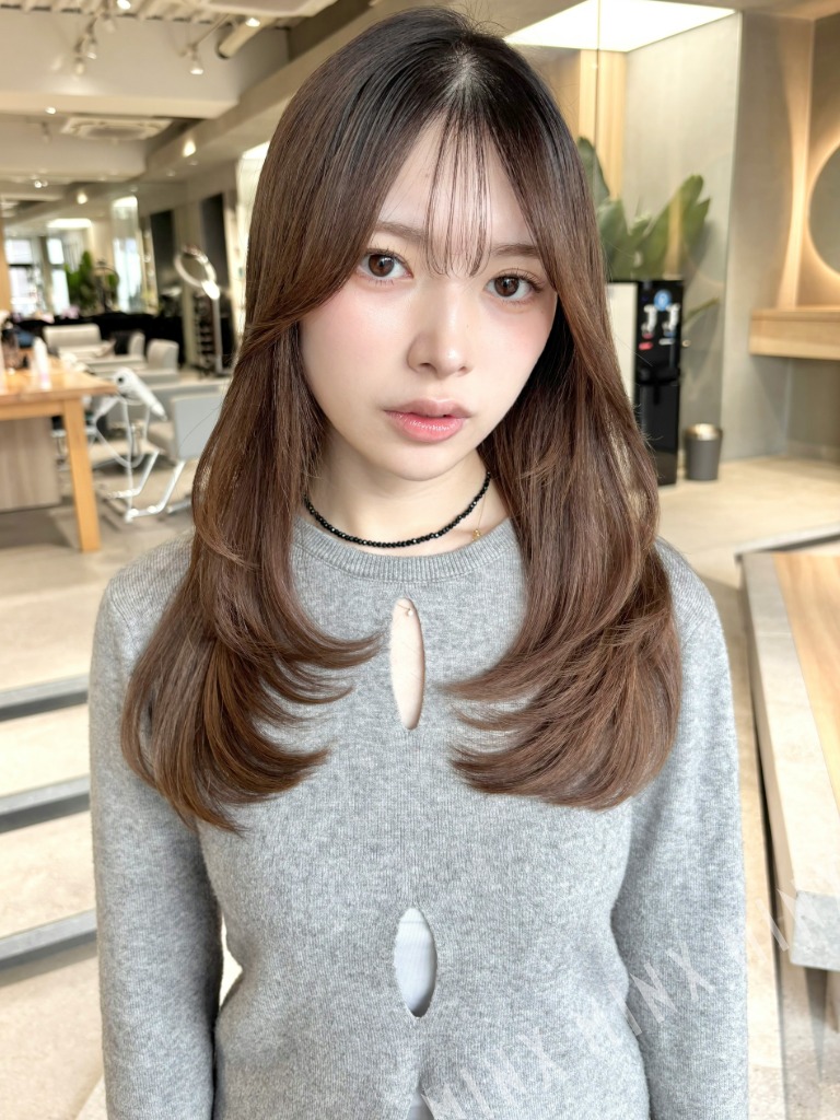 レイヤーカット×ベージュカラー