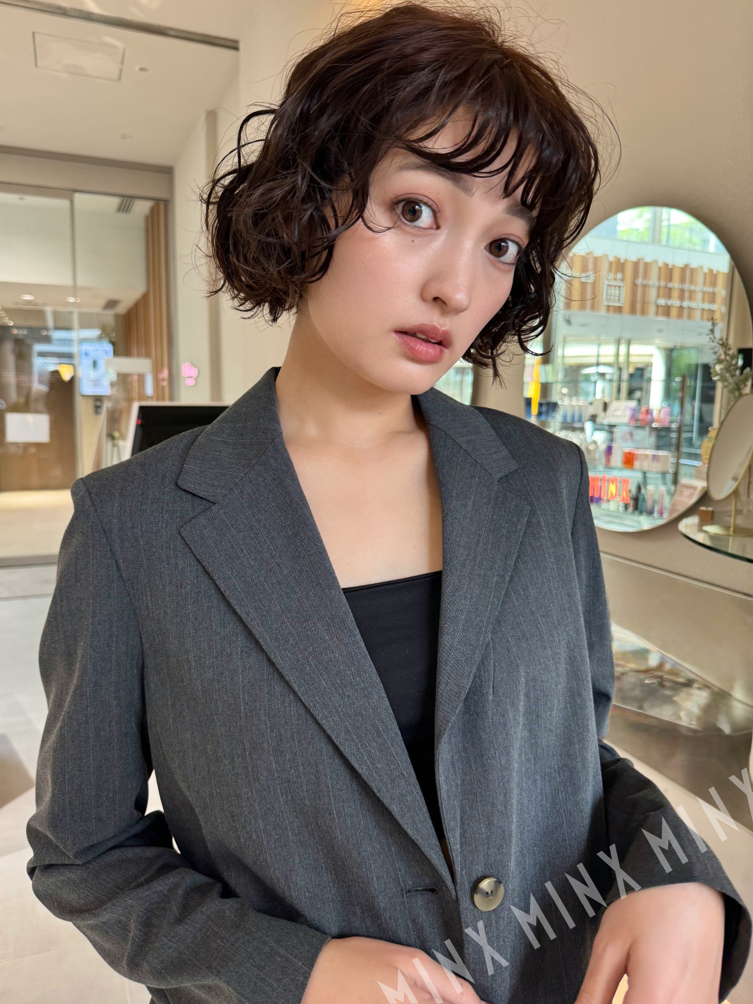 - 顎ラインのボブにスタイリングが楽になるニュアンスパーマを。ボブにパーマとっても人気です!