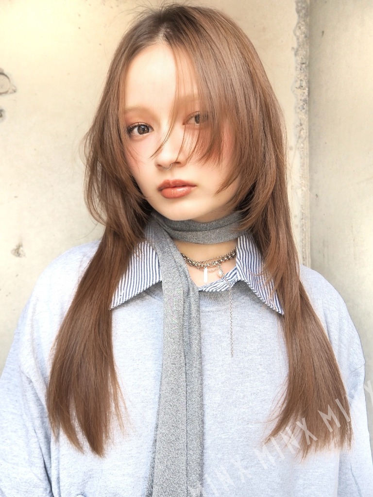 - 顔周りにレイヤーを入れてより小顔に見せました。