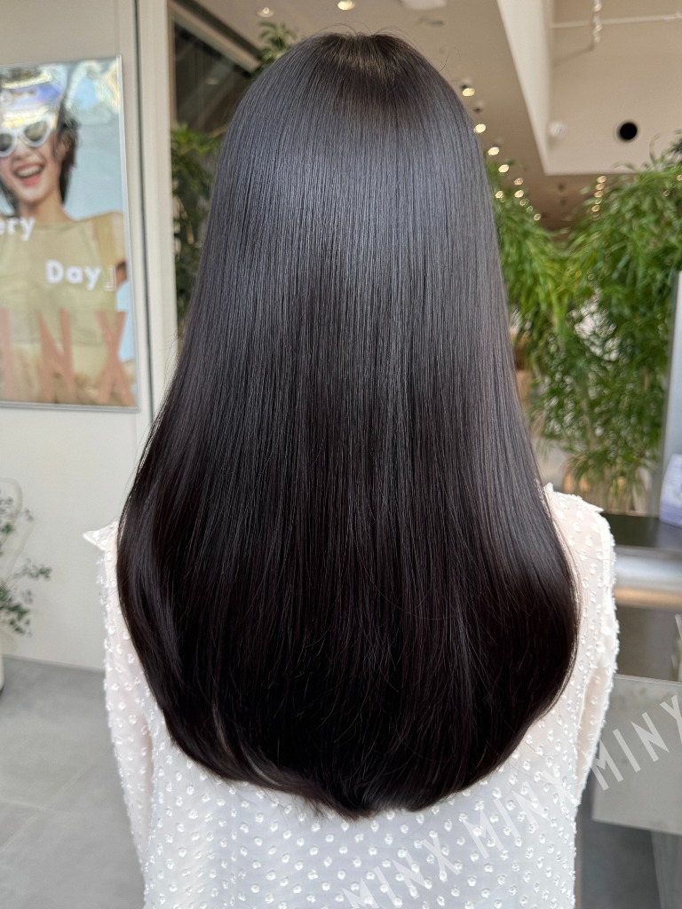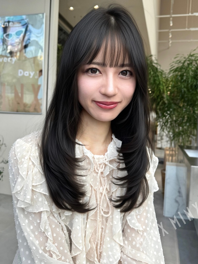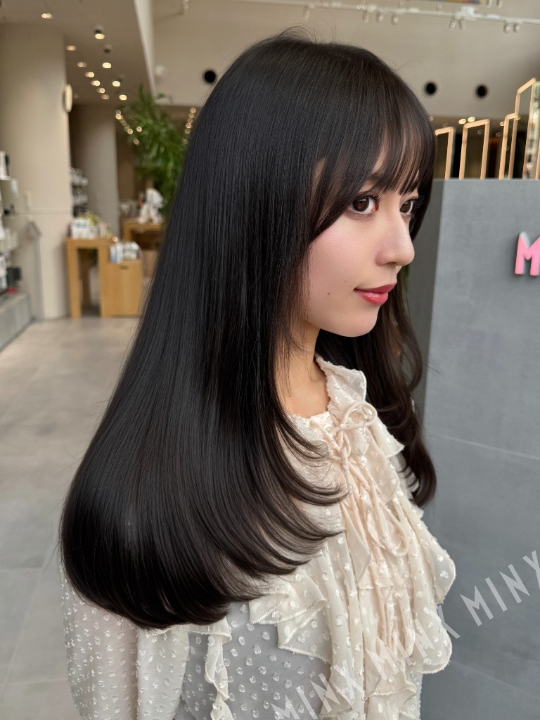 ストレートでも、巻いても映えるヘアスタイルです。