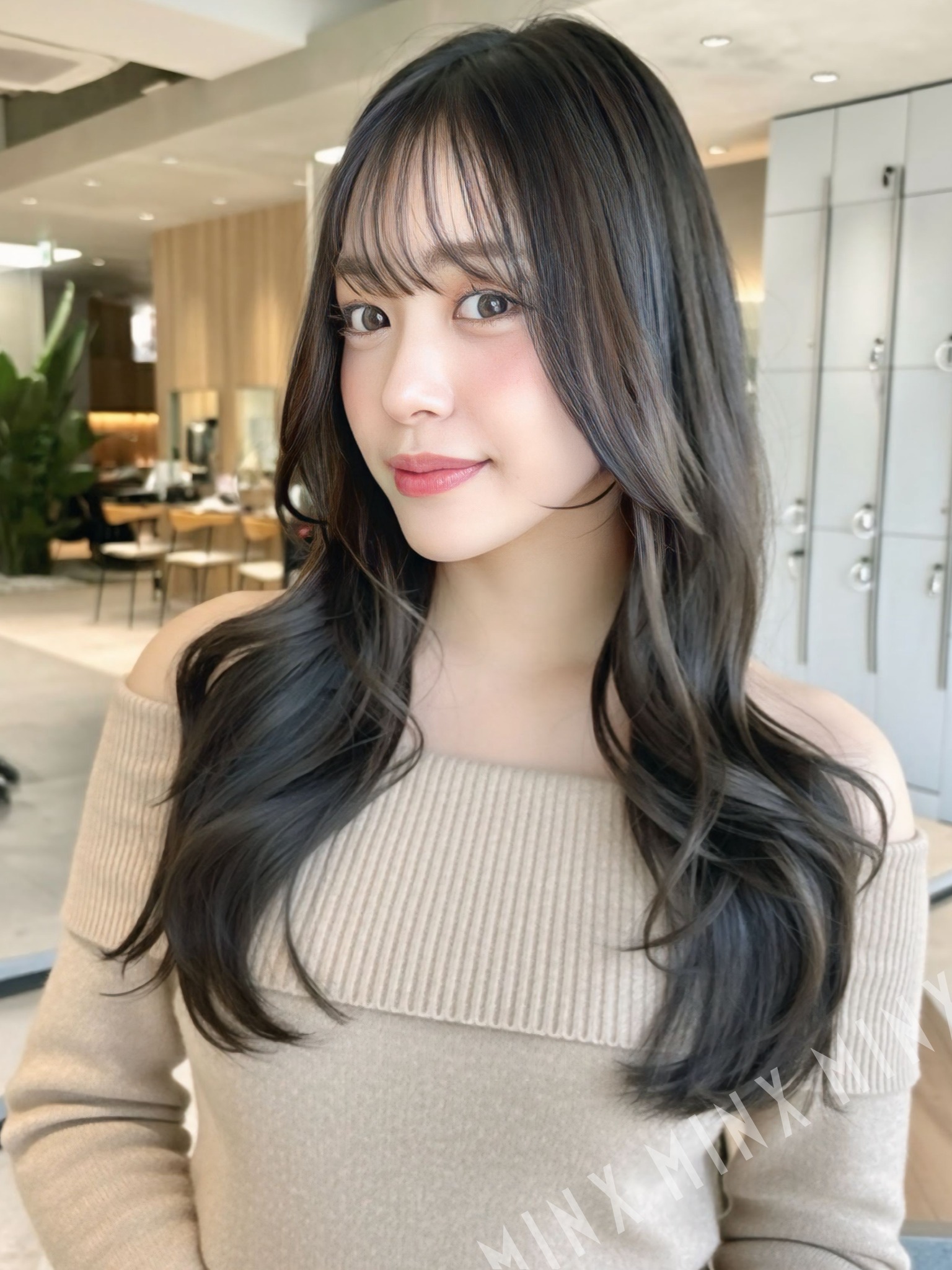 シースルーバングにすることで、雰囲気を明るく、写真を撮ってもふんわり可愛い印象になります。