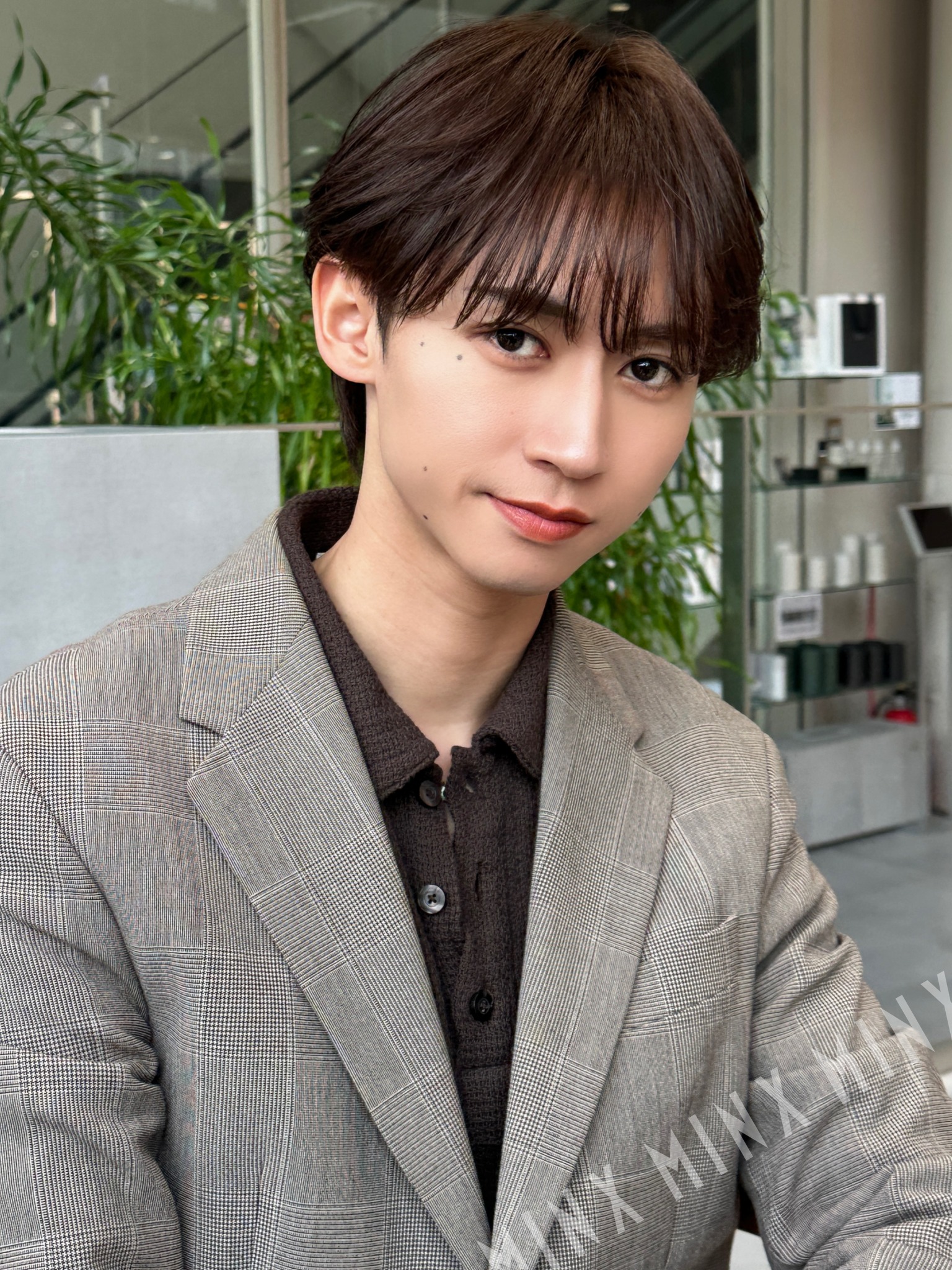 - バームのような質感のワックスを根本以外につけて前髪の太い束を細かく散らしたら完成。