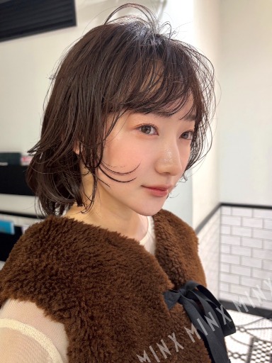- 顔周りのレイヤーと表面の無造作な毛先の動きがポイント
