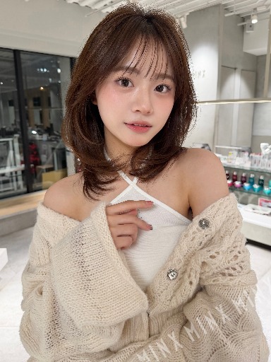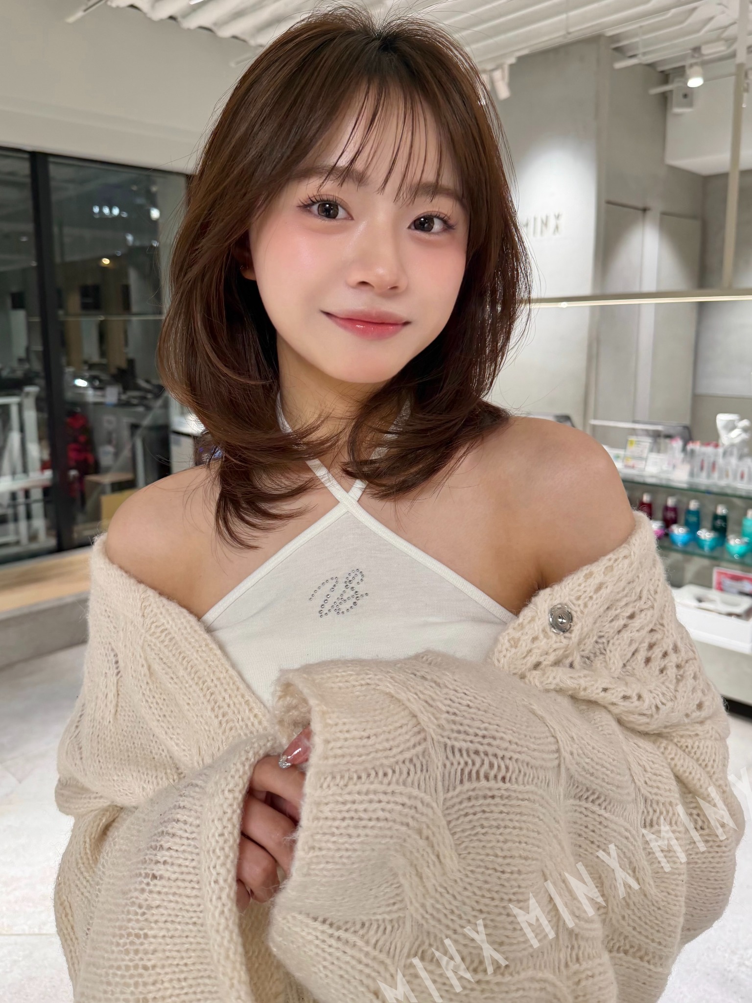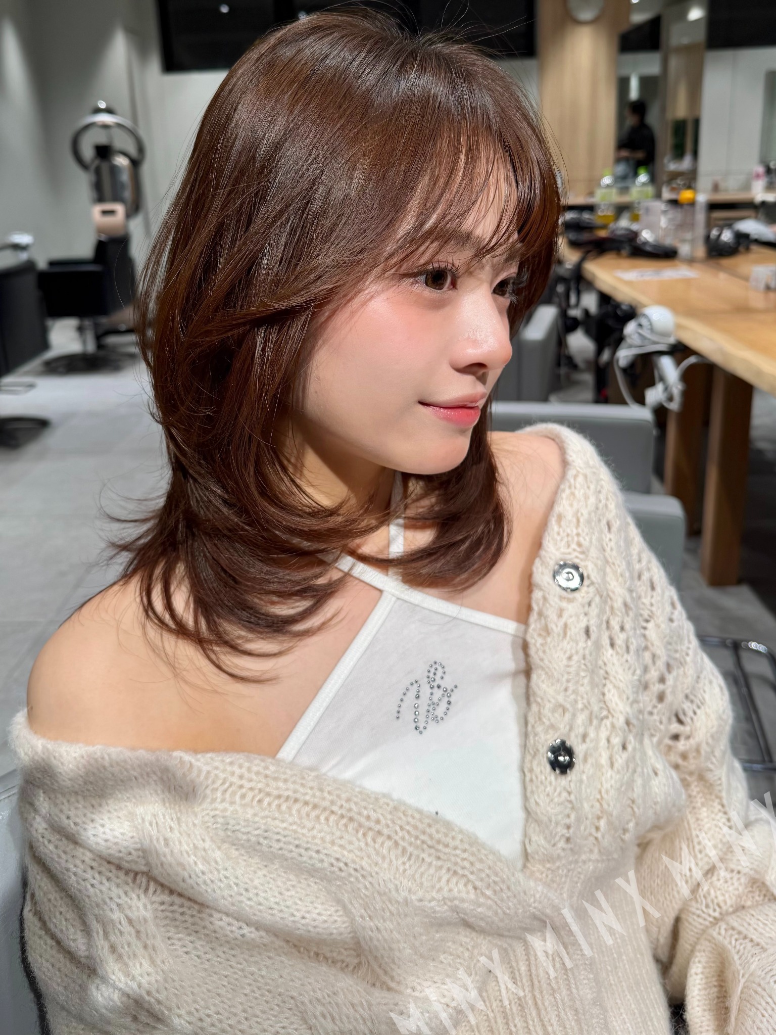 - ミディアムレングにたっぷりレイヤーを入れたヘア