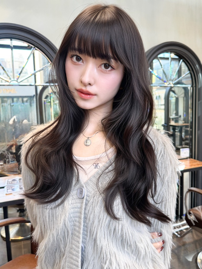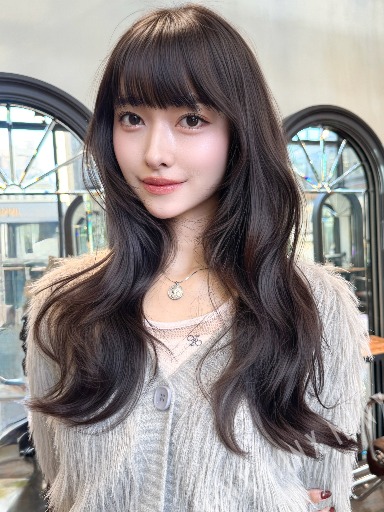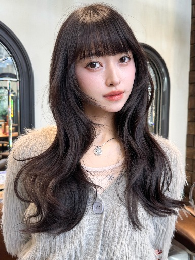 - 顔まわりのレイヤーが可愛い!レイヤーカットのロングヘア。