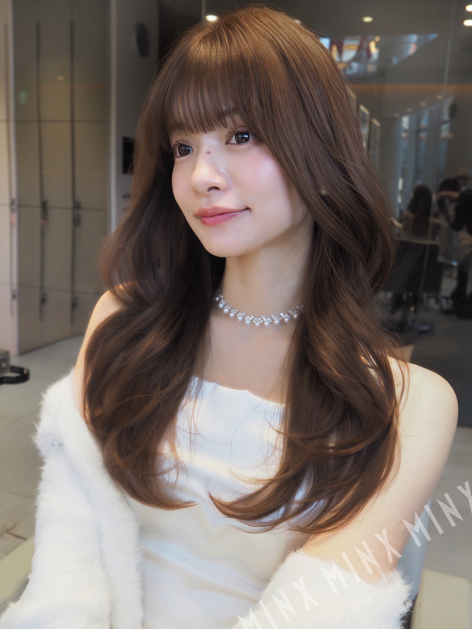 ストレートでも、巻いても映えるヘアスタイルです。