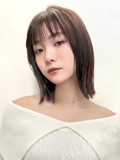 - ナチュラルなのに洗練された、大人のための透け感ミディアム。骨格に沿った小顔カットと、軽やかなシースルーバングで抜け感と女性らしさを両立。赤みを抑えたブラウンカラーで透明感もアップ。「落ち着き×可愛さ」が欲しい20~30代の方に大人気です!