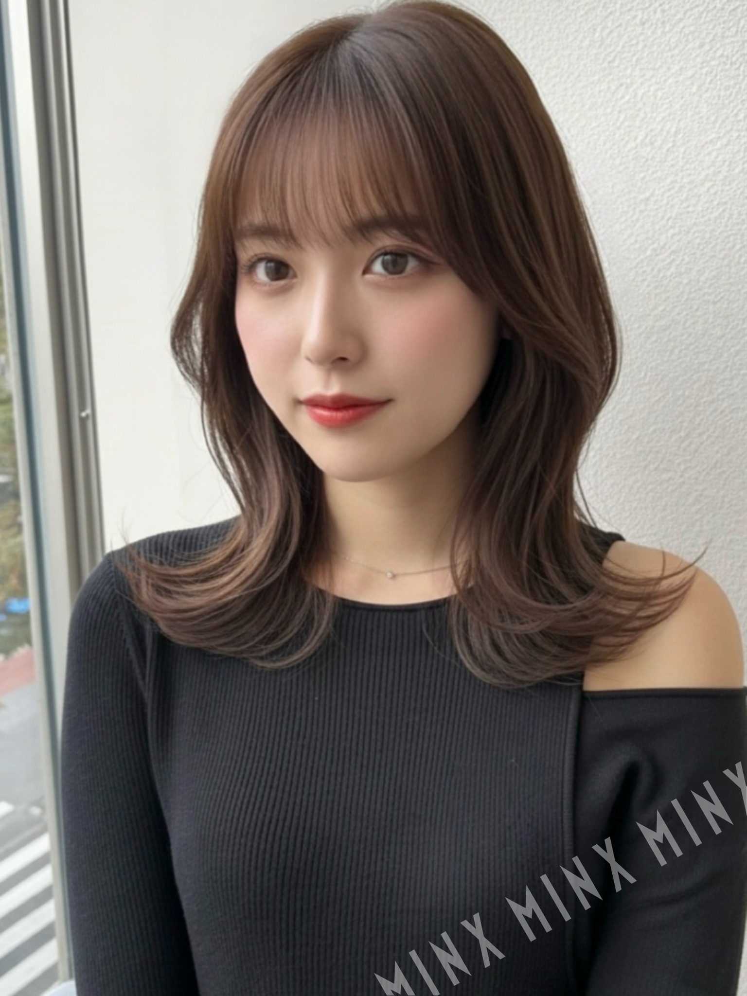 - ミディアムレイヤーをくびれで巻いて、ナチュラルだけど動きのあるスタイルに
