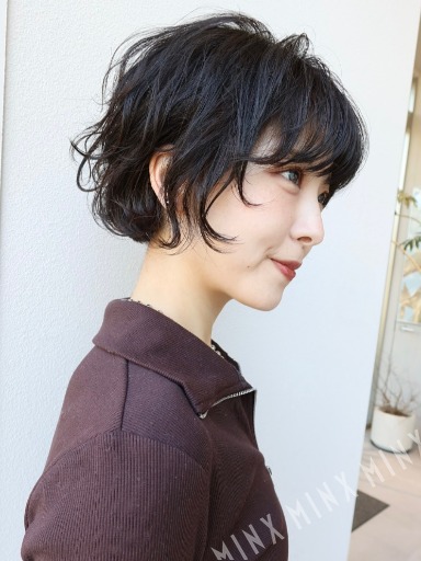 - 丸みのあるボブにゆるめのパーマをかけ、ふんわりとした動きと立体感をプラス。襟足はすっきりさせて首元をキレイに見せ、無造作なカールで抜け感のある大人可愛い印象に。スタイリングも簡単なパーマボブです。