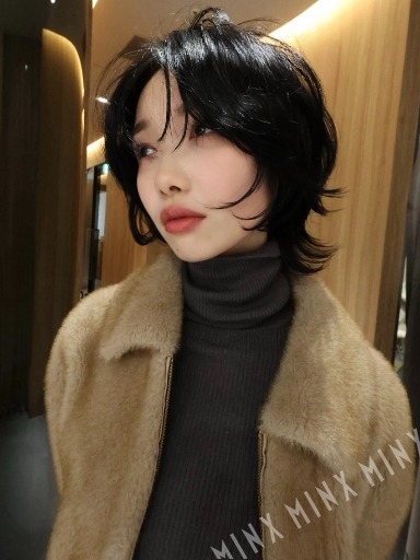 - 丸みのあるマッシュベースに、襟足を少し長めに残したウルフ要素をプラス。