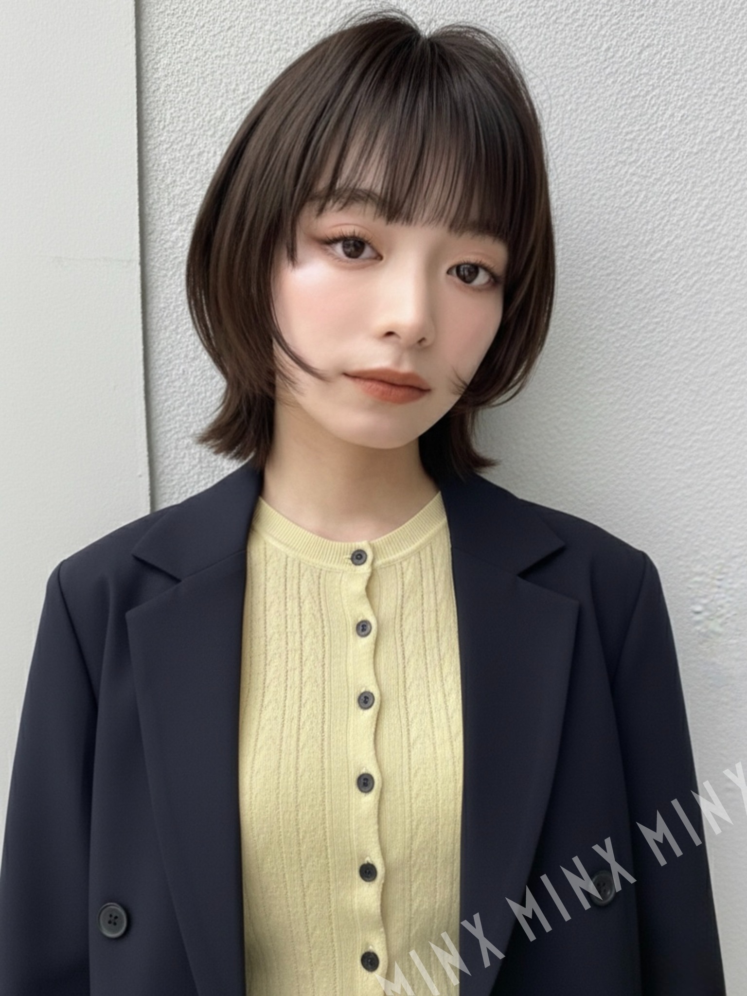 前髪はパッツンで少し重めに。