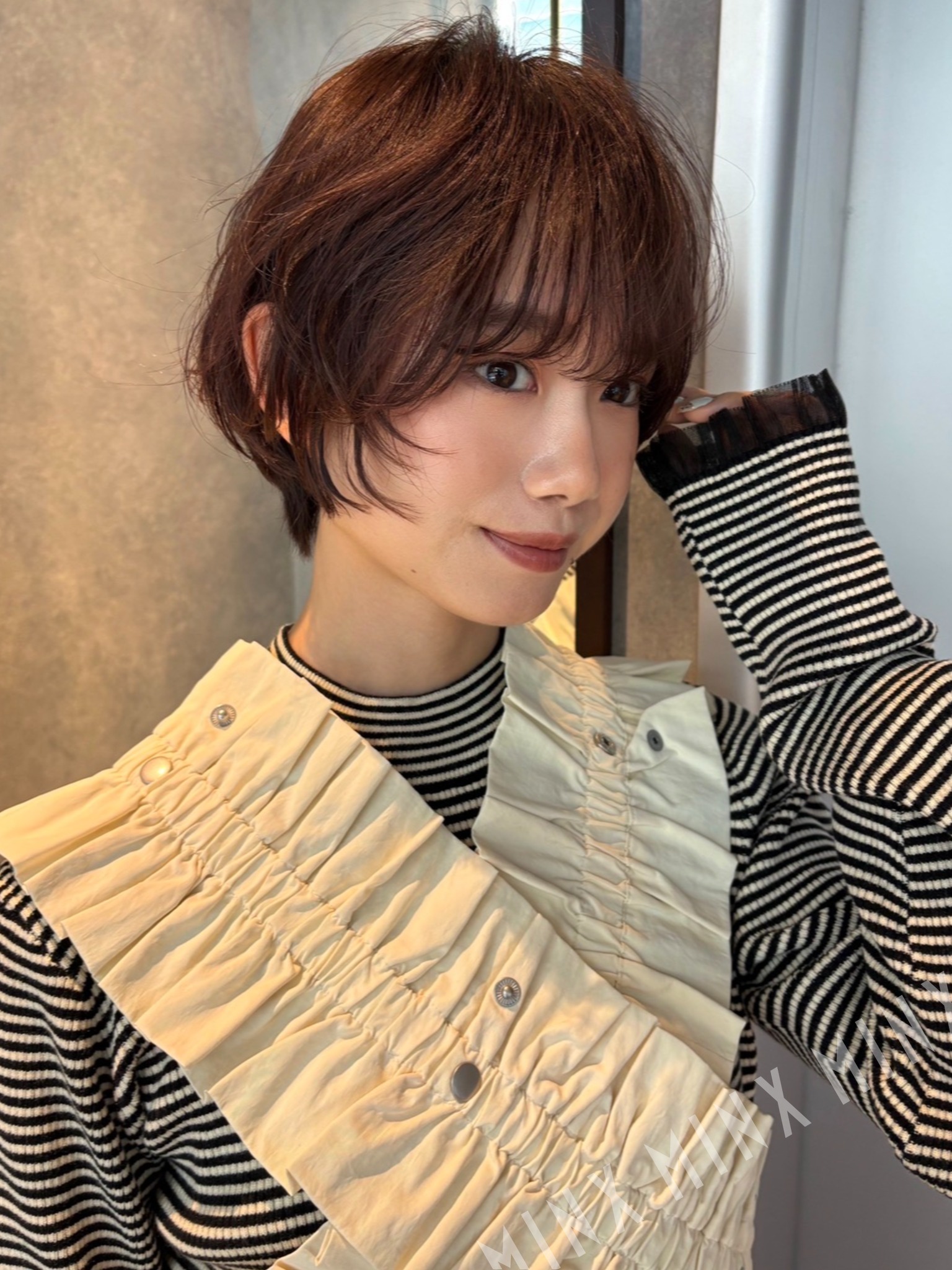 - 顔周りの毛をふんわりとカールをつけ、動きを出すことで大人っぽさもありつつ可愛らしい雰囲気にしました。