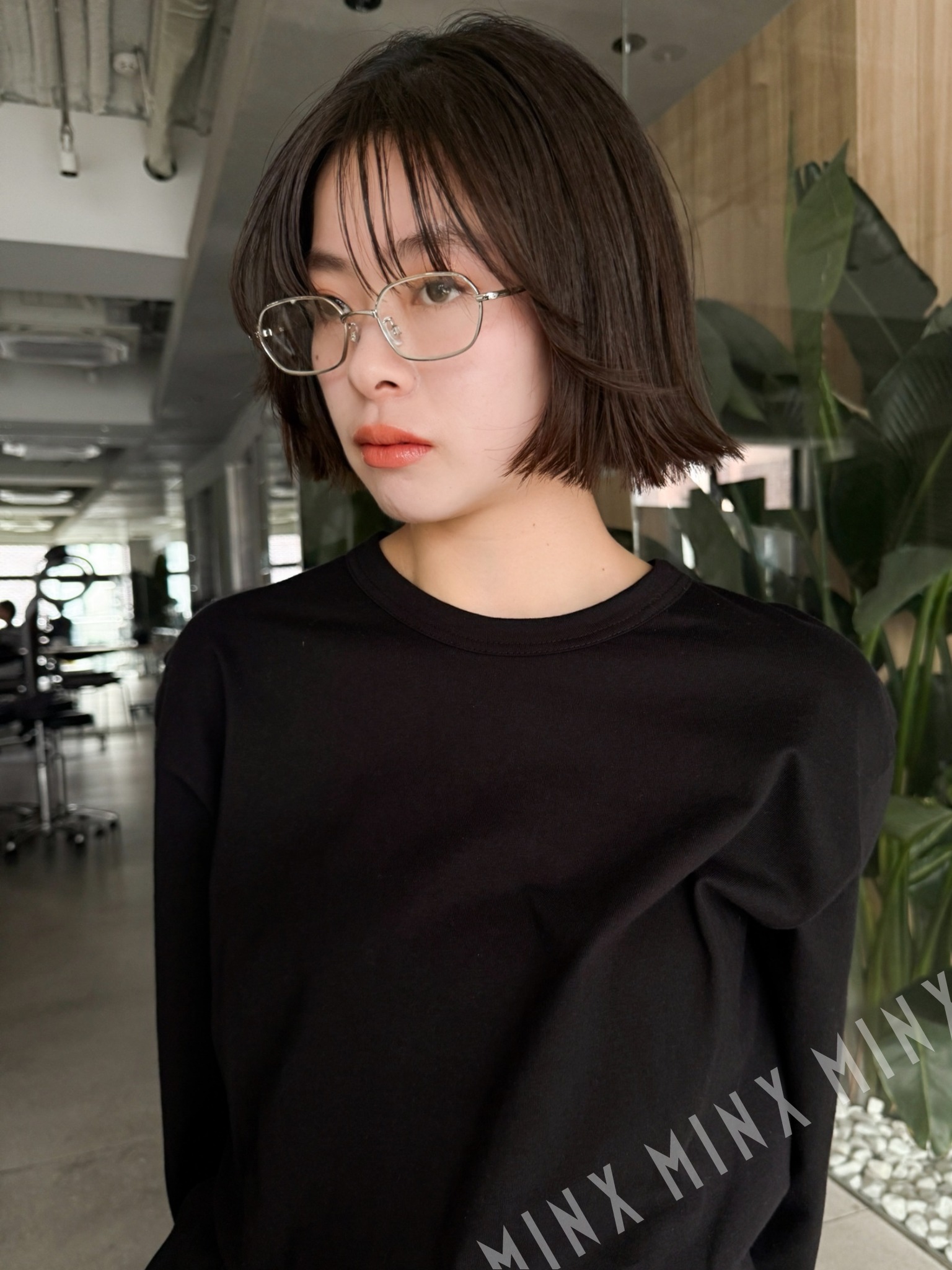 - 2026年トレンドのアンニュイな外はねボブ。