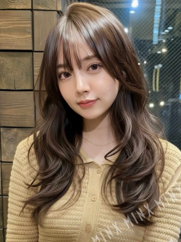 - 38ミリのコテでフォワードに巻いて、艶スプレーを付けたら束を割いて完成です