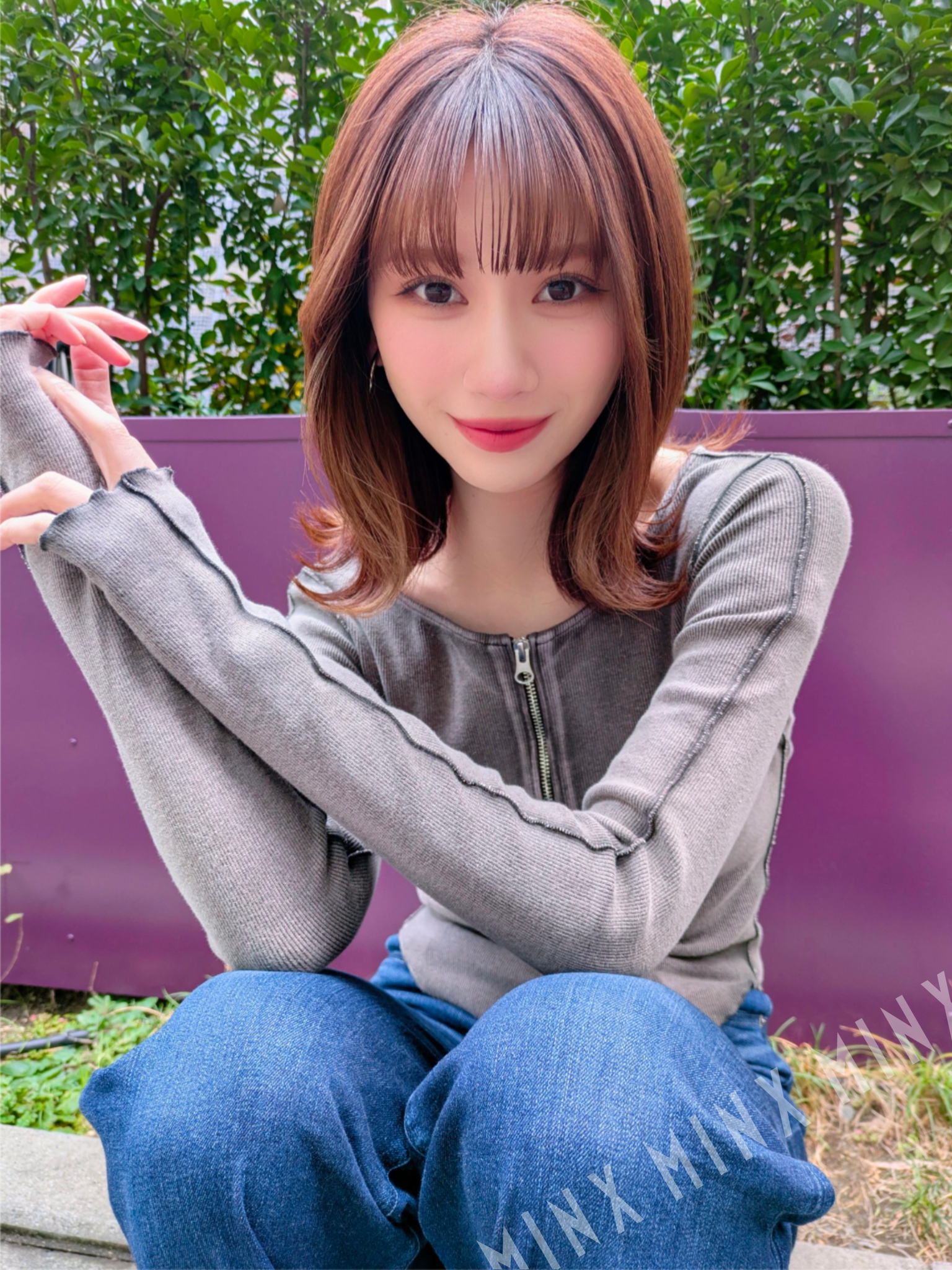 - ストレートアイロンで毛先を外ハネに巻いたら、最後に軽くバームをつけて完成です。