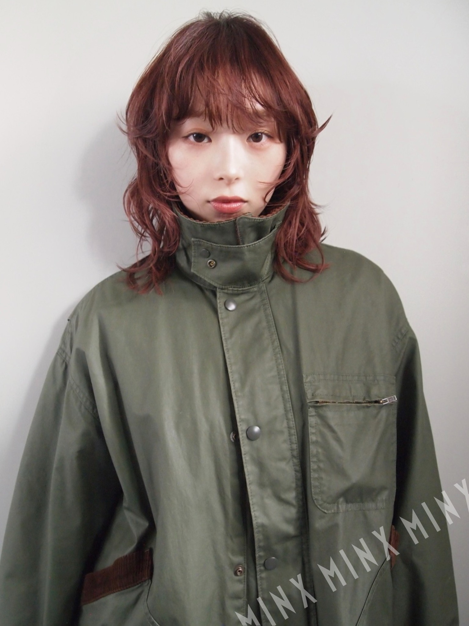 - 顔まわりや、中間部分にもしっかり動きをつけ、毛先はランダムに巻きラフな質感に仕上げています。
