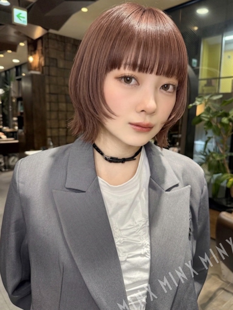 - 前髪広めのかわいい重めレイヤーボブスタイル!