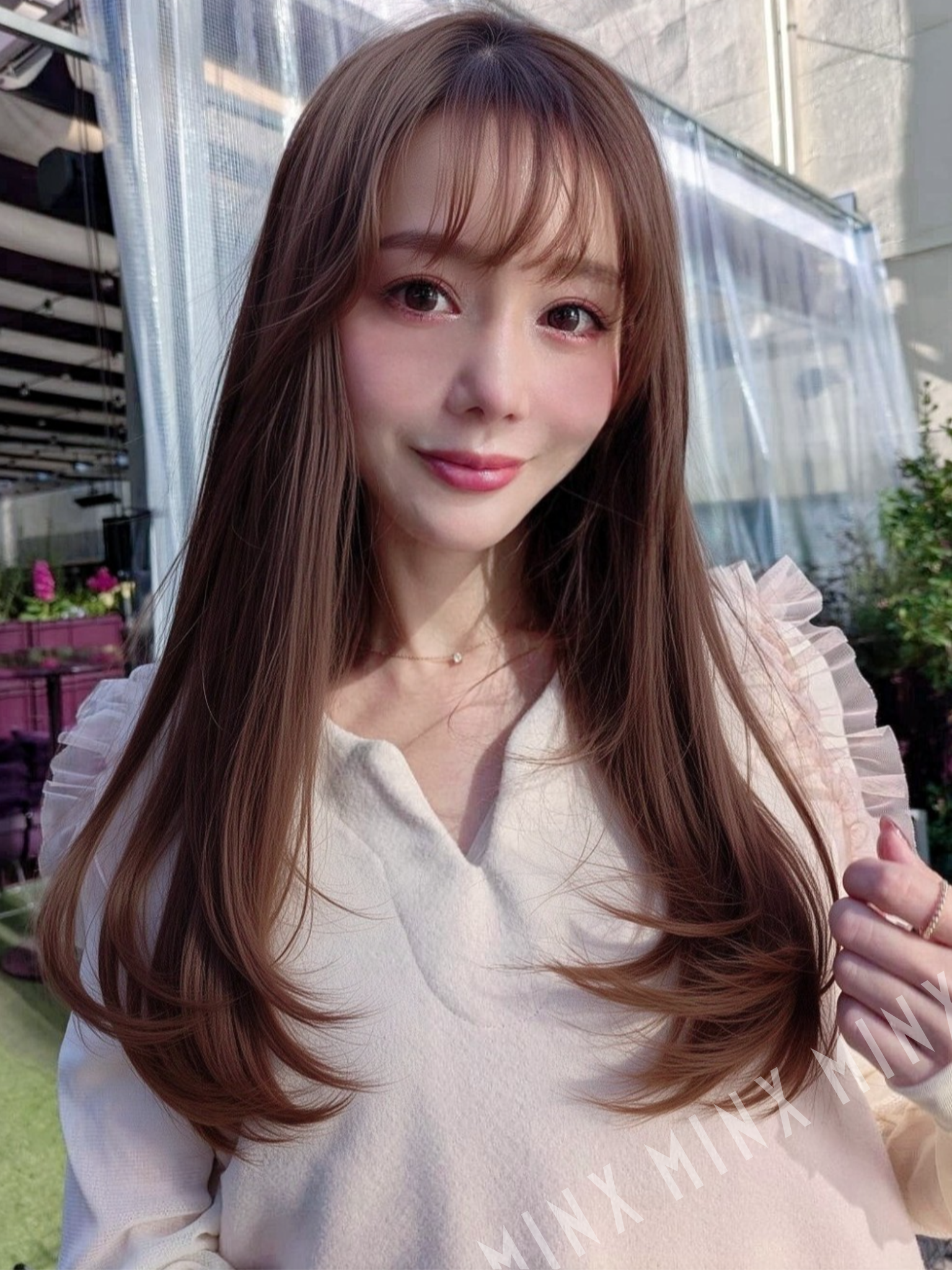 - 透明感ある柔らかな質感のナチュラルストレートヘア。