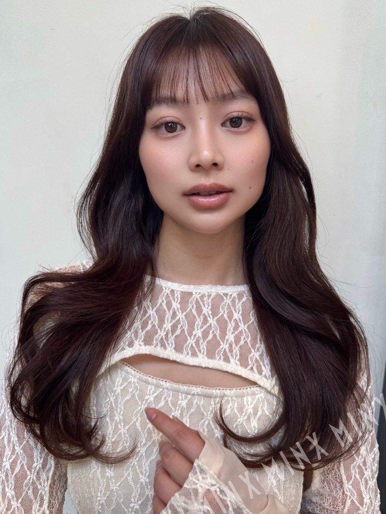 • 前髪: 隙間感を持たせたシースルーバングで、目元に抜け感を。